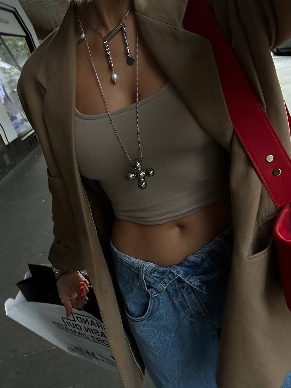 Підвіс виготовлений із кераміки, вкритий десятивідсотковою надглазурною платиною. Ланцюжок – нержавіюча сталь. Довжина прикраси — 105 см.