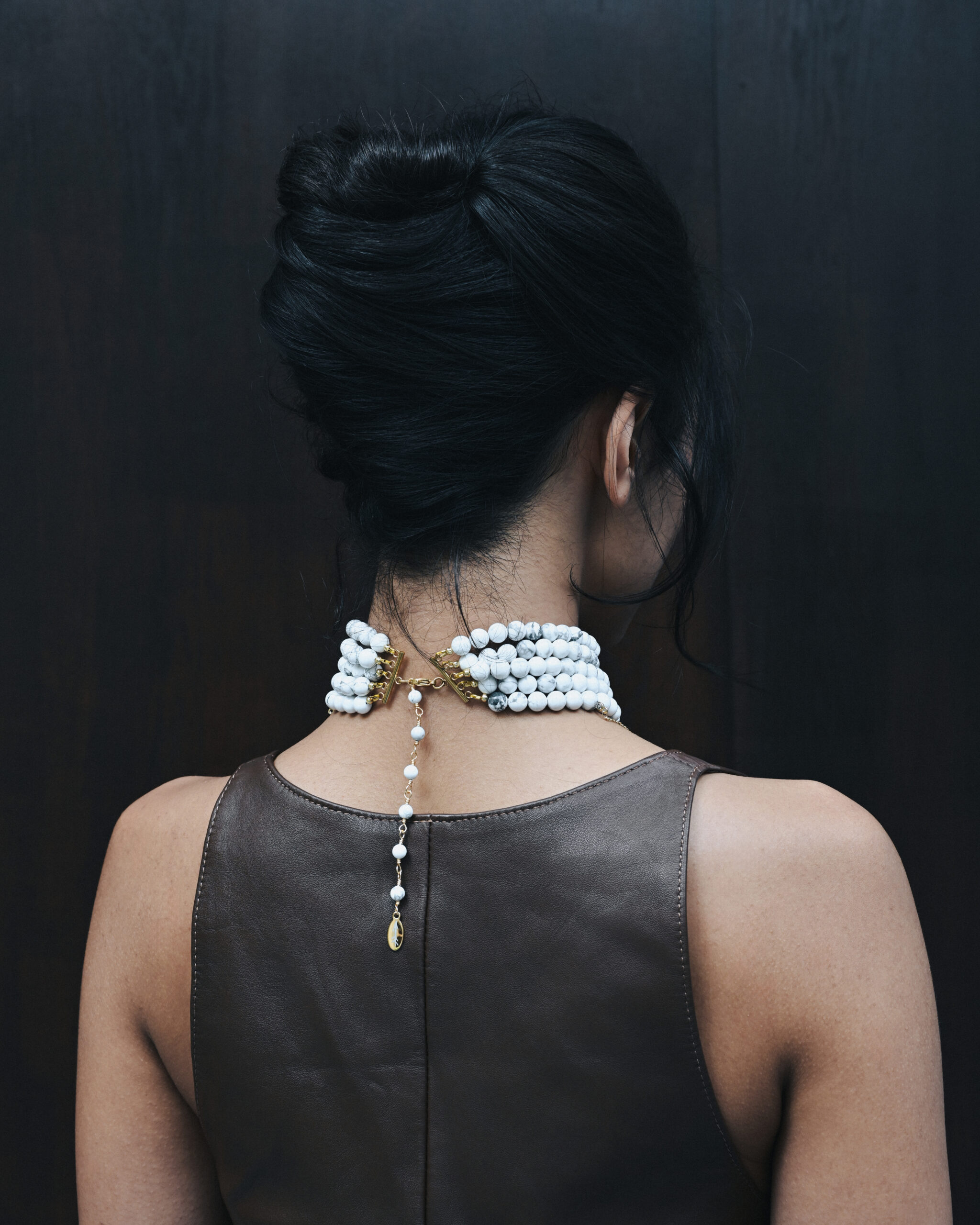 Caholong necklace. The fittings are made of gold-plated brass, the pendants are inlaid with zircons. Nickel-free. Length: 33 cm + 10 cm extension chain.