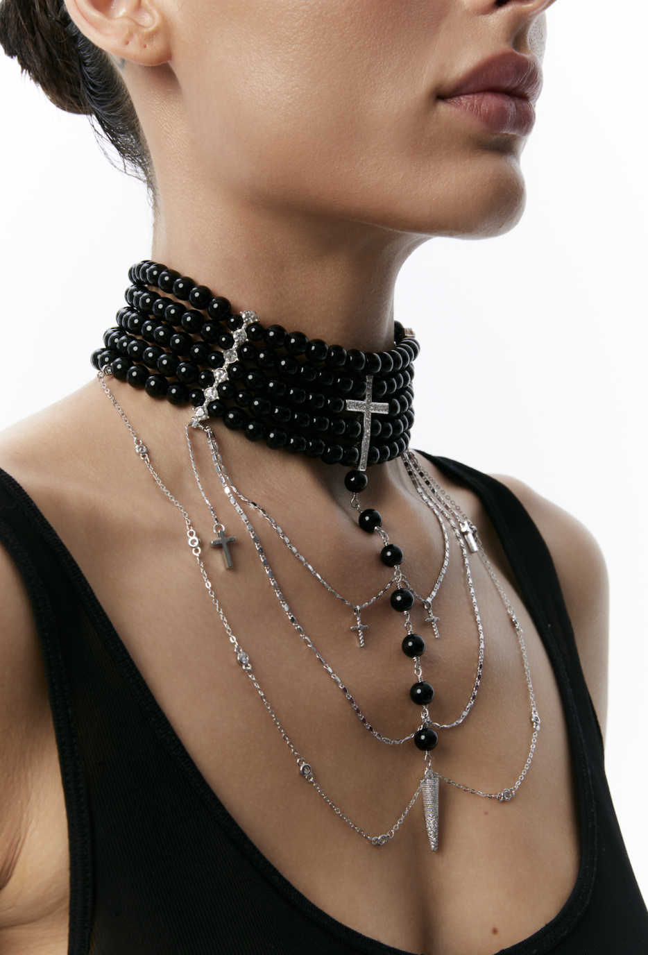 "INNOCENT" NECKLACE BLACK WITH SILVER