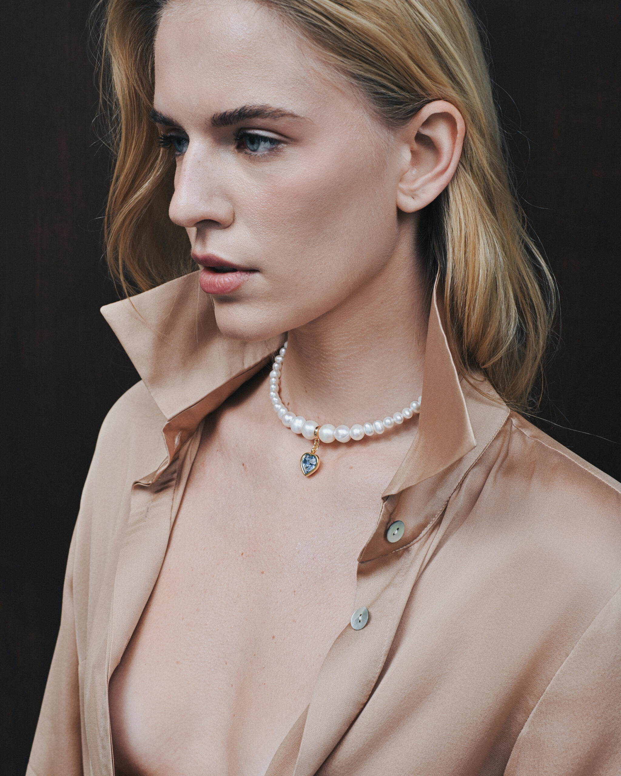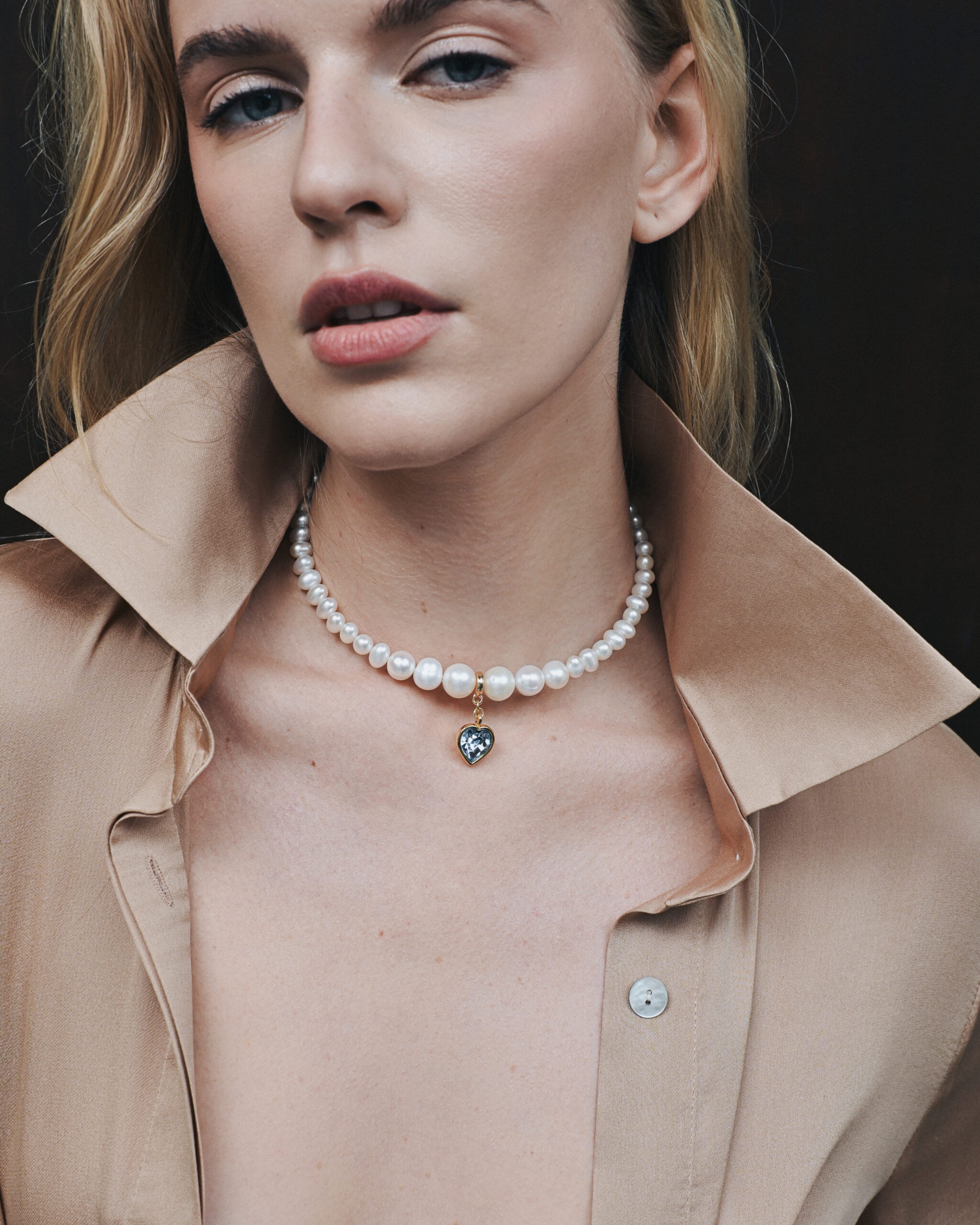 A classic string of pearls becomes a modern choker, and a heart-shaped pendant adds individuality...