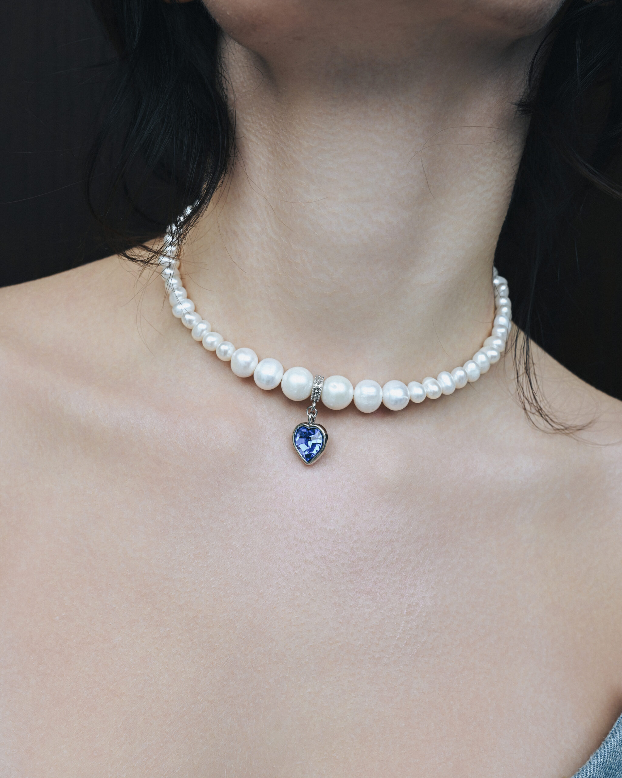 A classic string of pearls becomes a modern choker, and a heart-shaped pendant adds individuality...