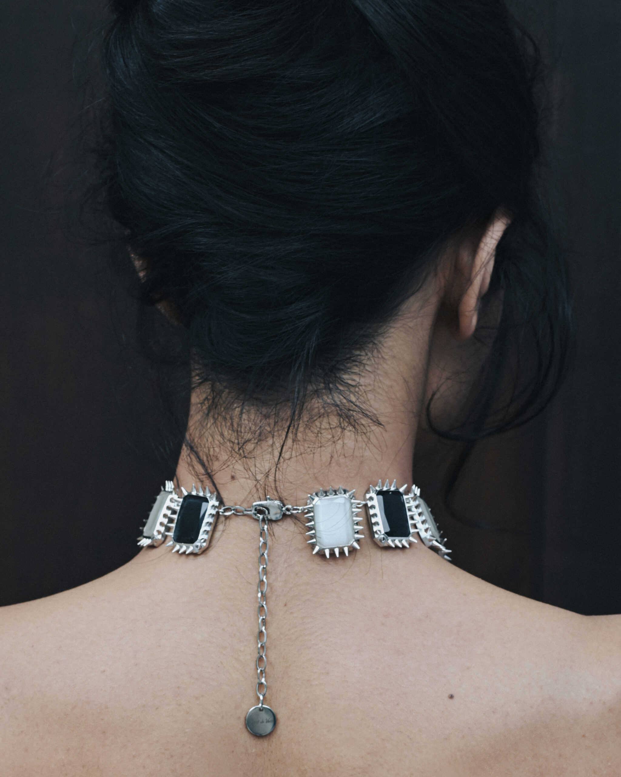 Each piece of jewelry is the painstaking work of craftsmen who process each spike by hand.