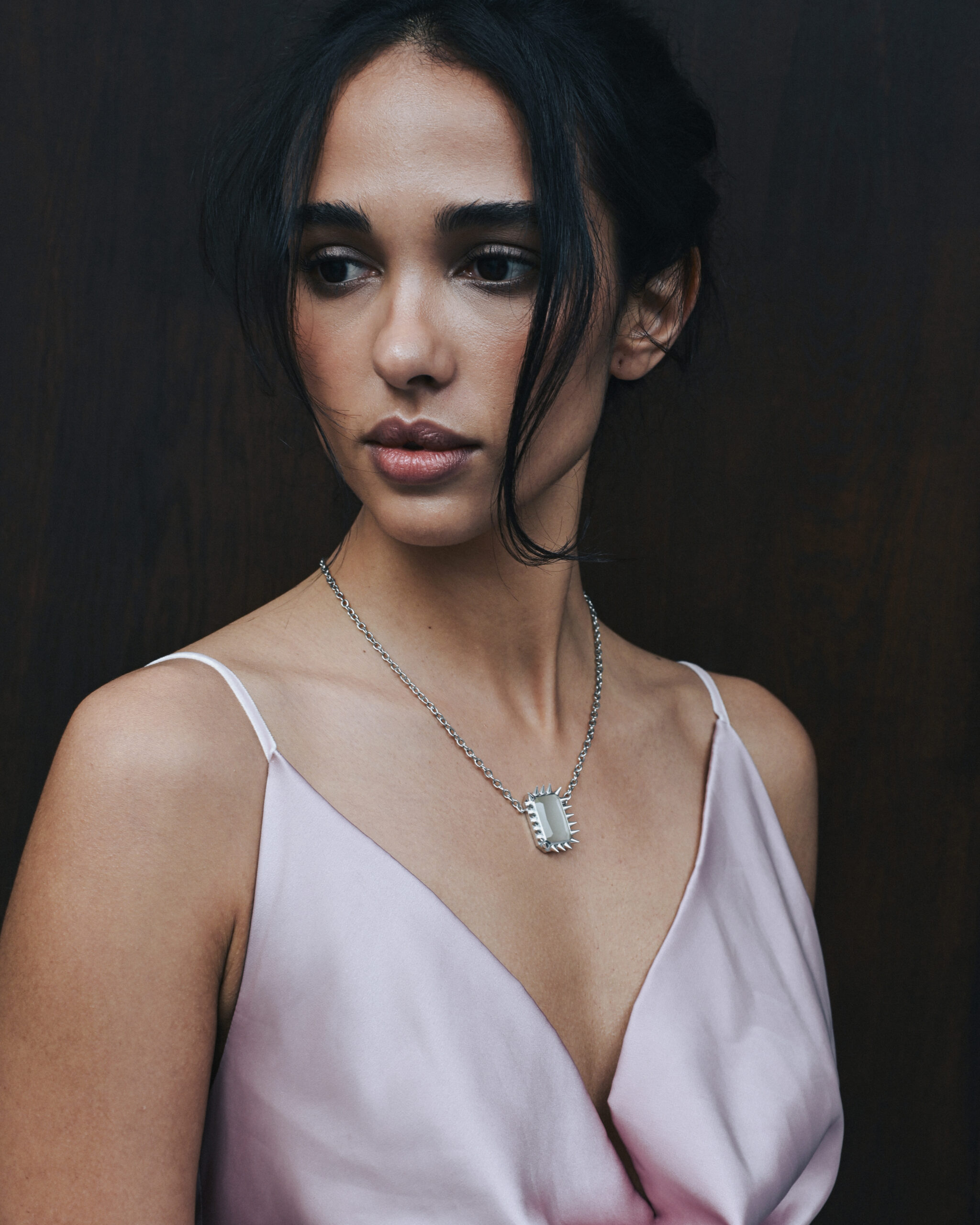 The pendant is made of 925 sterling silver with rhodium plating, the stones are jewelry glass.