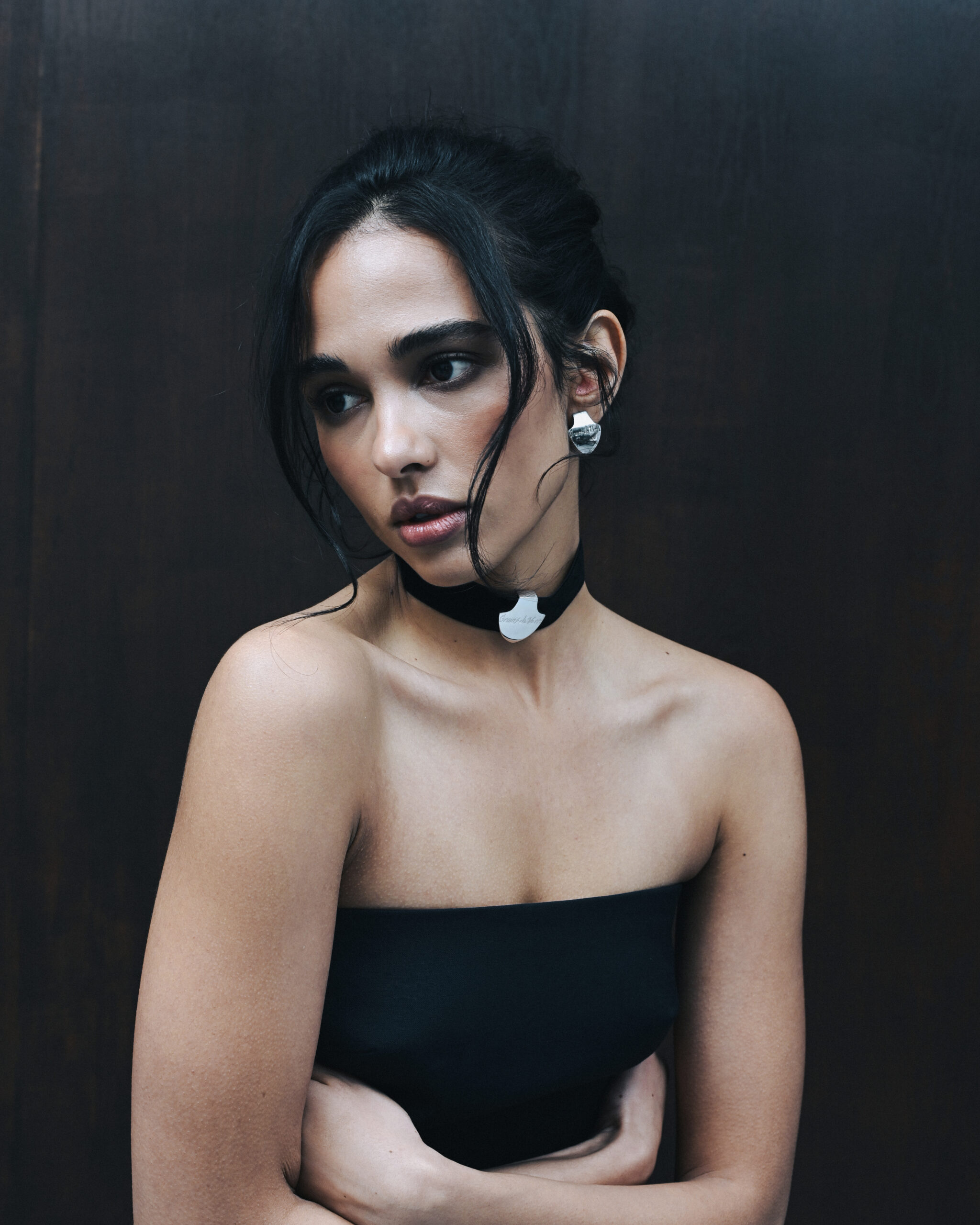 Підвіс виготовлений з латуні з родієвим покриттям. Фурнітура – нержавіюча сталь. Без нікелю. Довжина чокеру – 30 см + 10 см подовжуючий ланцюжок.
