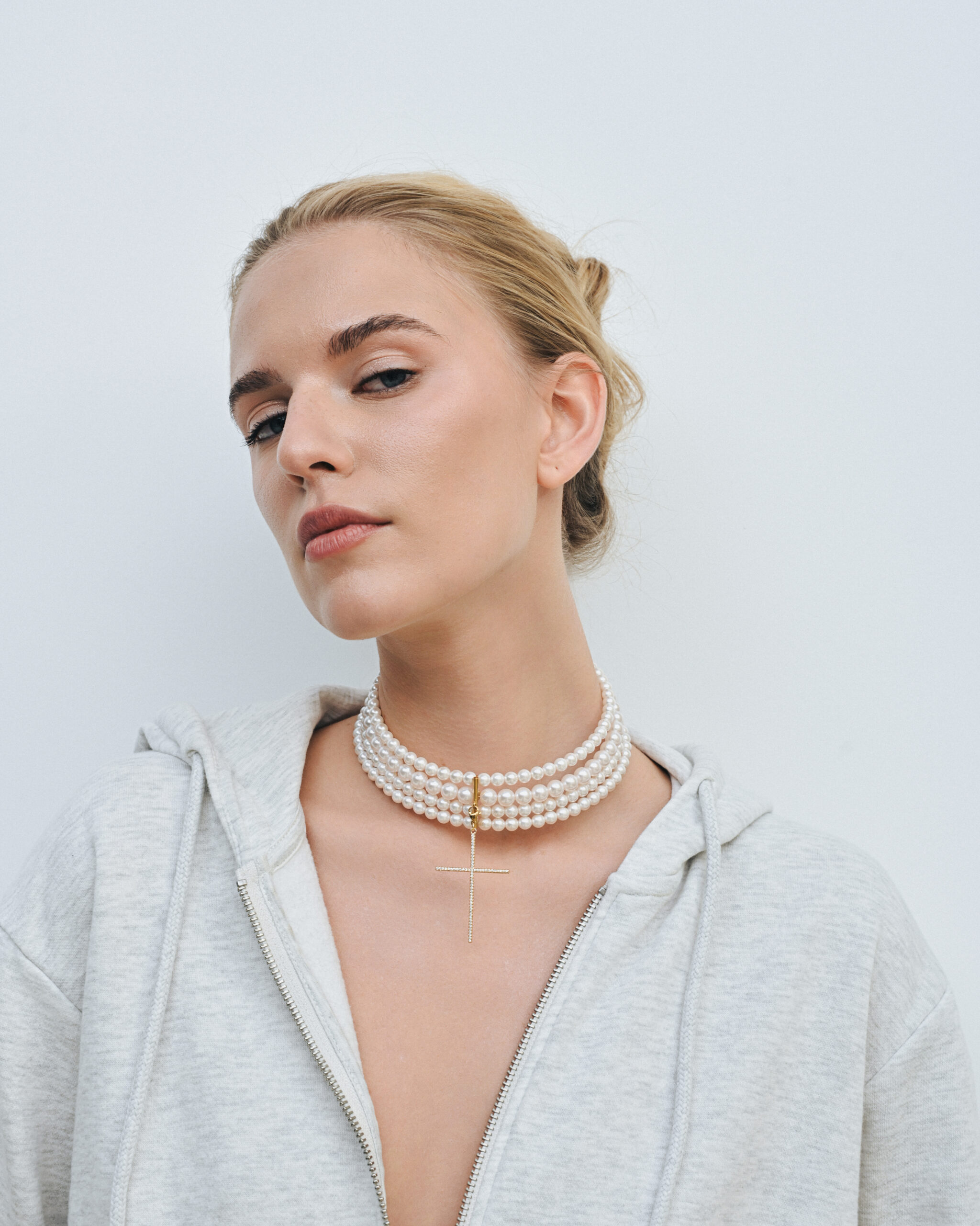 Підвіска виготовлена з латуні у позолоті та інкрустована цирконами.